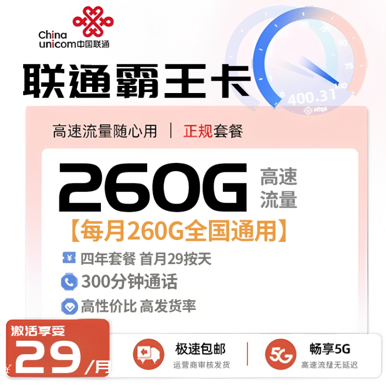 29元260G+300分钟(18-28岁),官宣长期,黄金速率!