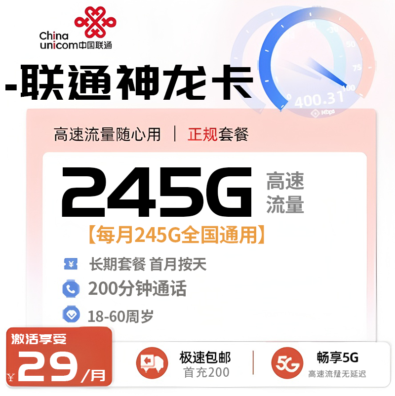 29元245G通用+200分钟通话+超龄
